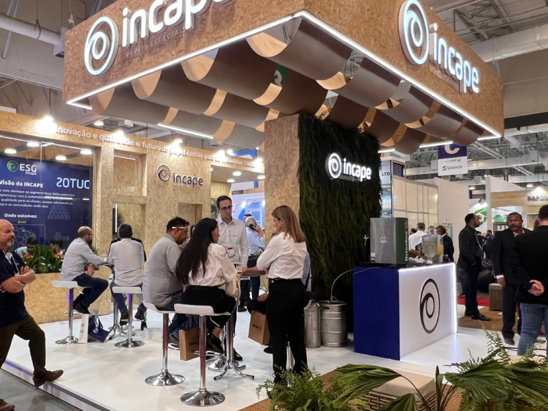 O estande da INCAPE foi projetado com foco em sustentabilidade, refletindo as práticas ESG que a empresa abraça, cada vez com maior ênfase, no seu DNA.